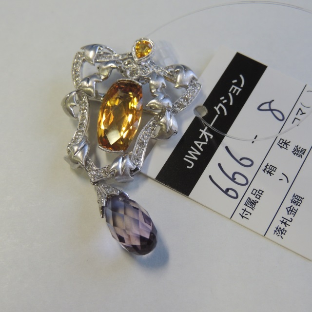 ブローチ アメジスト シトリン サファイヤ ダイヤ K18 16.20g 石目:15.18 0.45 0.82