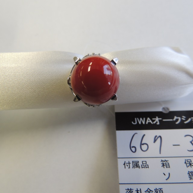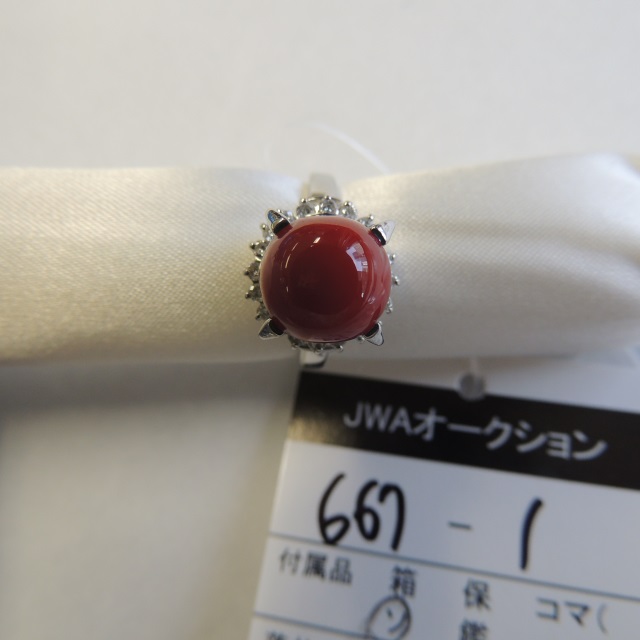 リング サンゴ ダイヤ 10.25mm Pt900 6.30g 鑑 石目:0.15