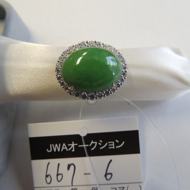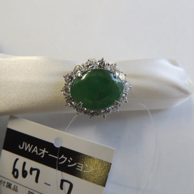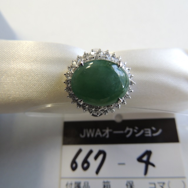 リング ヒスイ ダイヤ Pt900 15.40g 中ソ 石目:7.669 2.35