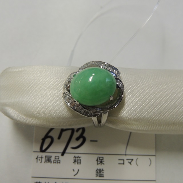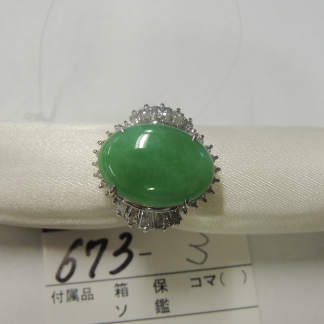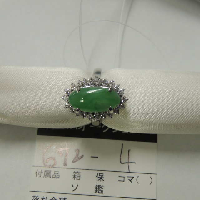 リング ヒスイ Pt900 8.90g GRJソ 石目:3.16 D0.44