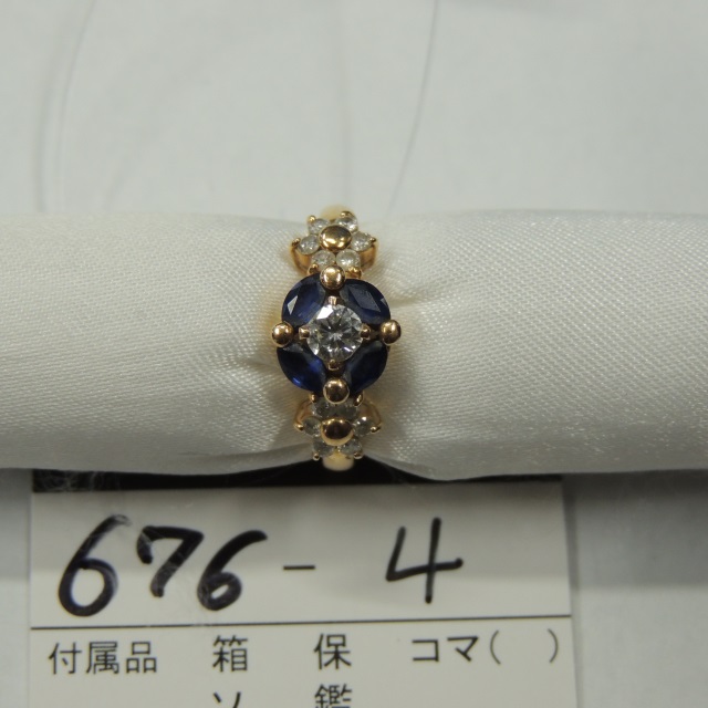 リング サファイヤ ダイヤ 刻印薄 K18 3.60g 石目:0.48 0.24