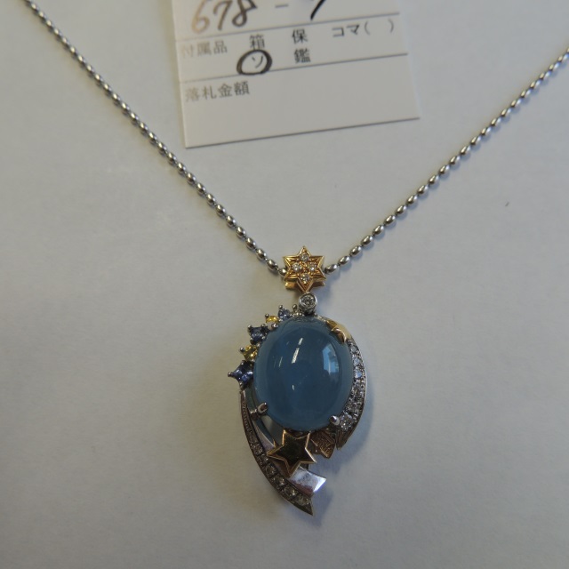 ペン・ネック ショーヤマガタ アクアマリン サファイア Pt900/K18/K18WG 16.90g ソ 石目:FD0.32
