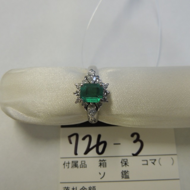 リング エメラルド Pt900 8.70g 中鑑 石目:5.26 0.56