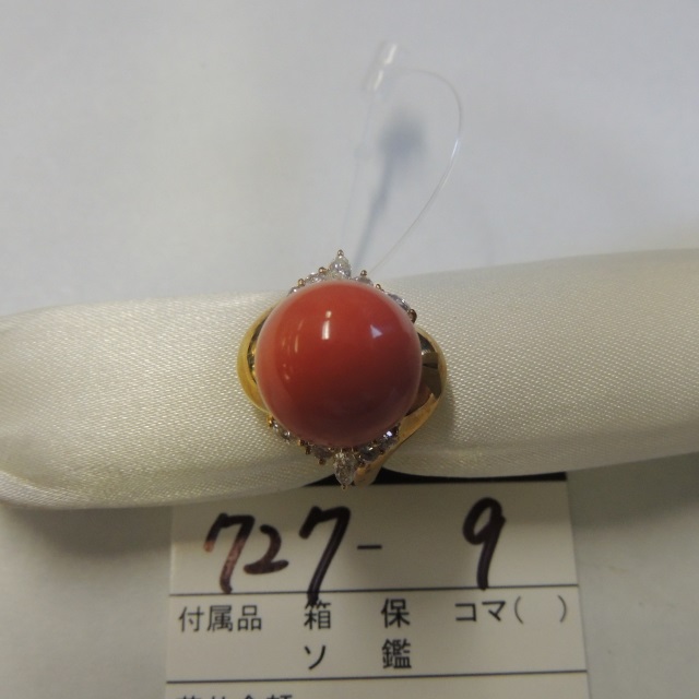リング サンゴ ダイヤ K18 9.60g 石目:D0.33