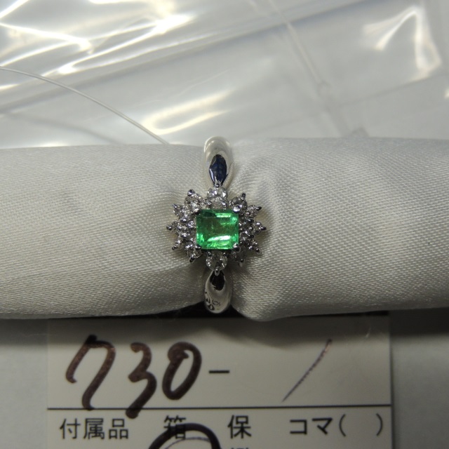 リング エメラルド ダイヤ Pt900 3.80g 中ソ 石目:E0.36 D0.33