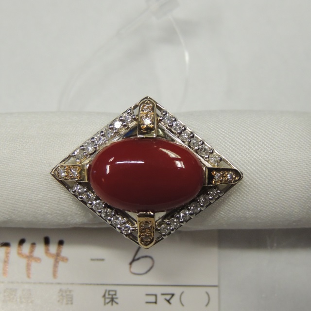 リング サンゴ ダイヤ Pt900/K18 15.20g 石目:0.55