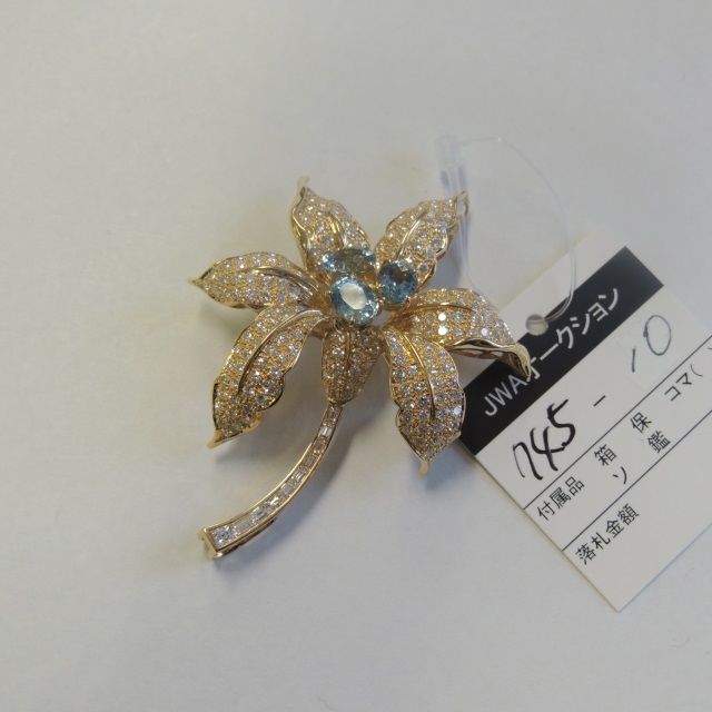 ブローチ アクアマリン ダイヤ 18K 23.70g 石目:3.93 4.92