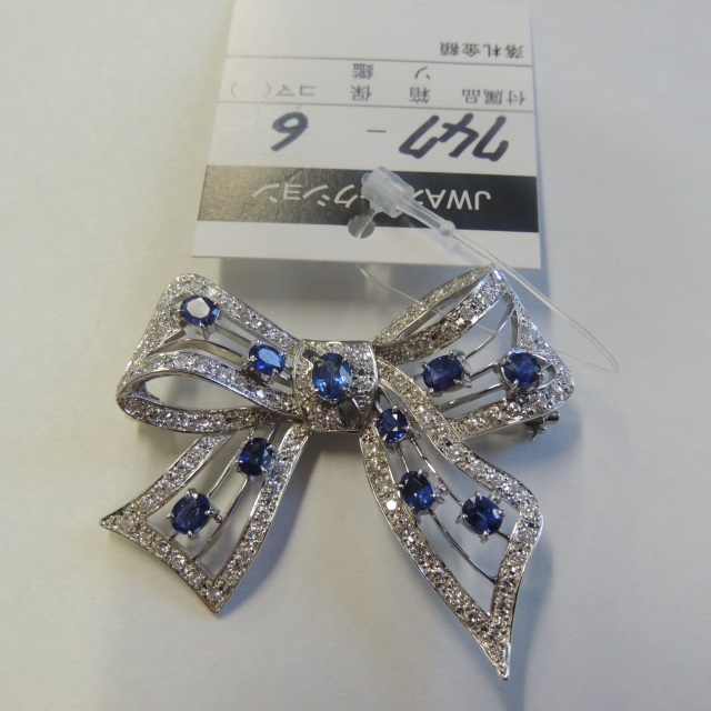 ブローチ サファイヤ ダイヤ Pt900 16.80g 石目:0.69 0.28 D1.12