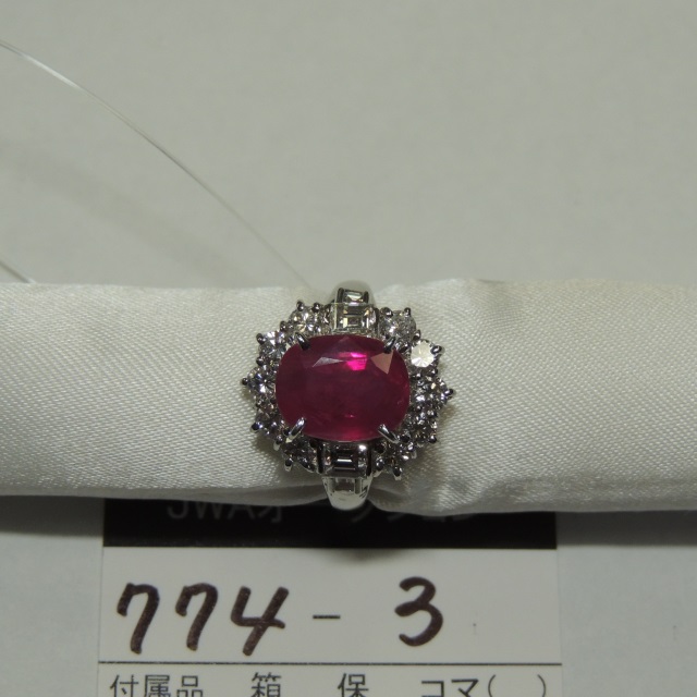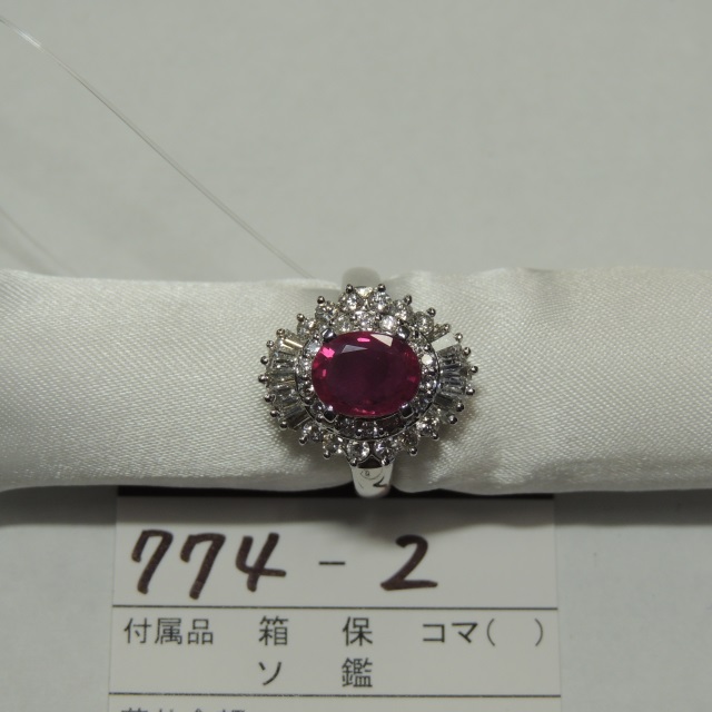 リング ルビー Pt900 9.80g 石目:3.678 D0.59