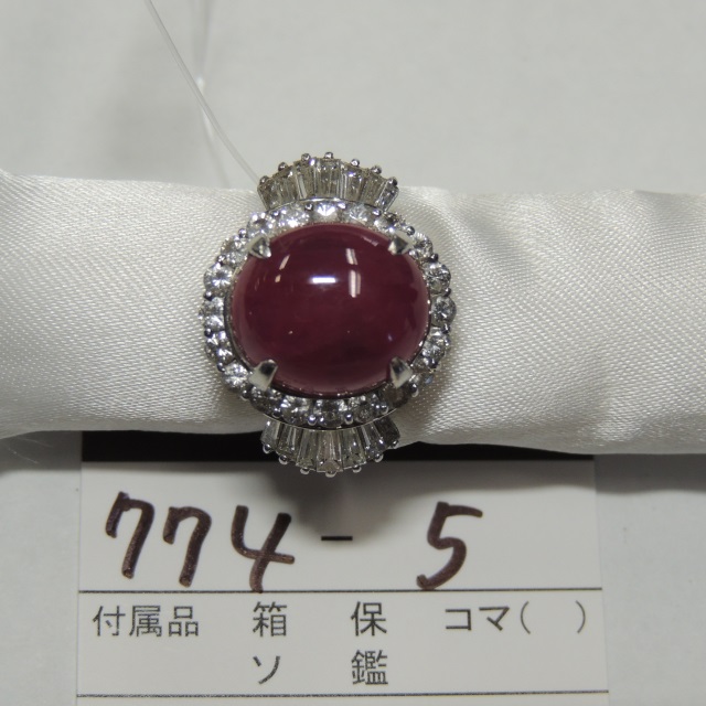 リング ルビー Pt900 9.50g 石目:4.93 D0.89