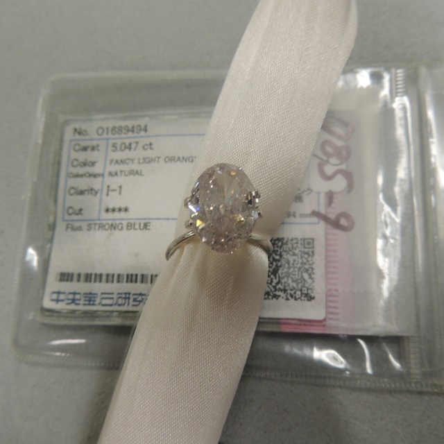 ルース FANCY LIGHT ORANGY PINK I-1 STRONG BLUE 中ソ(後日) 石目:5.047