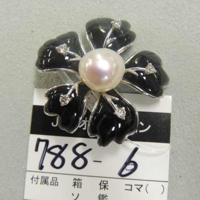 ブローチ タンスイパール アゲート ダイヤ K18WG 14.70g 石目:D0.26