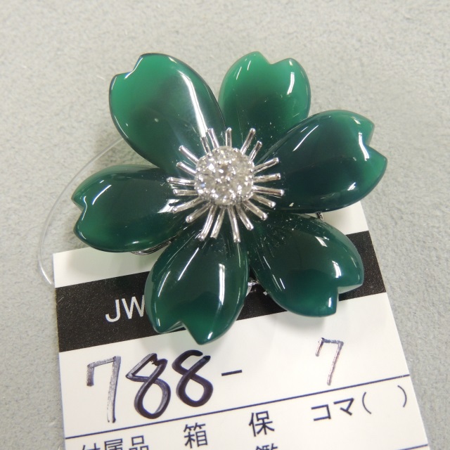 ブローチ グリーンアゲート K18WG 14.30g 石目:D0.20