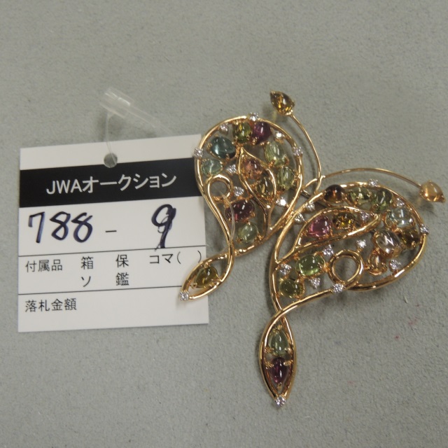 ブローチ 色石 ダイヤ 48PS K18PG 17.30g 石目:TR11.56 D0.53