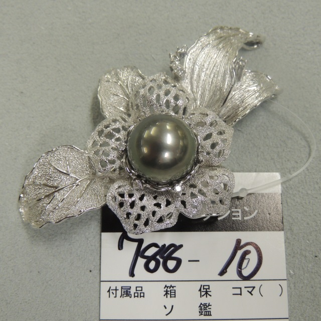 ブローチ ブラックパール 14.11mm K18WG 26.00g 石目:D0.22