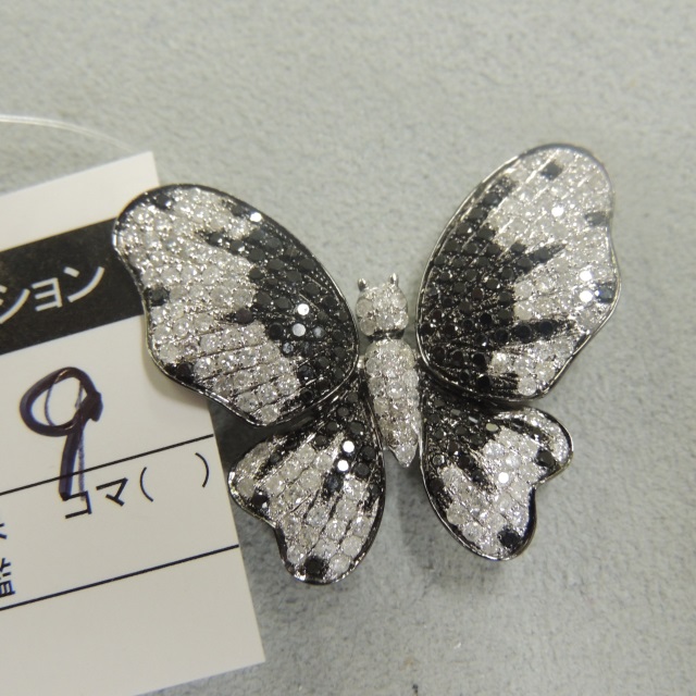 ブローチ ダイヤ ブラックダイヤ 265PS K18WG 10.80g 石目:D1.70 BD1.00