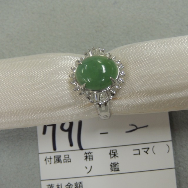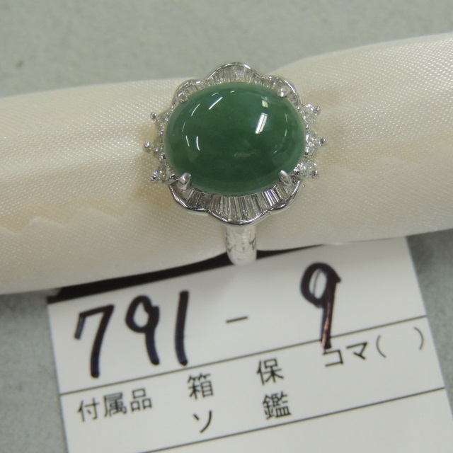 リング ヒスイ ダイヤ Pt900 6.90g 石目:J2.70 D0.48