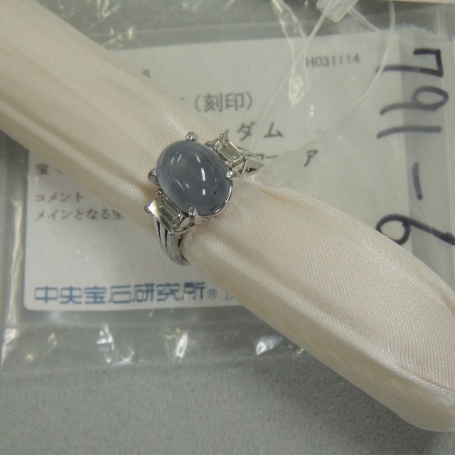 リング 青色石 ダイヤ Pt900 10.80g 石目:5.06 D1.26