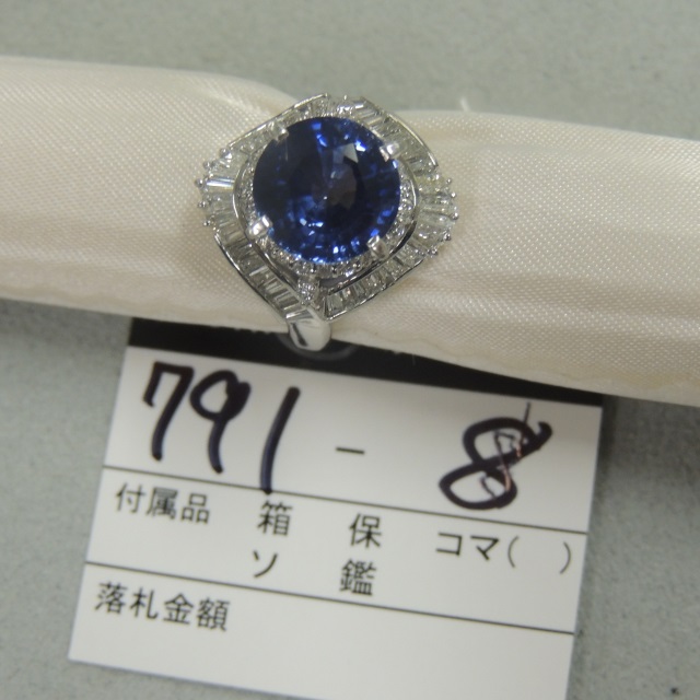リング ブルースターサファイア ダイヤ Pt900 8.20g 中ソ 石目:SS8.31 D0.75