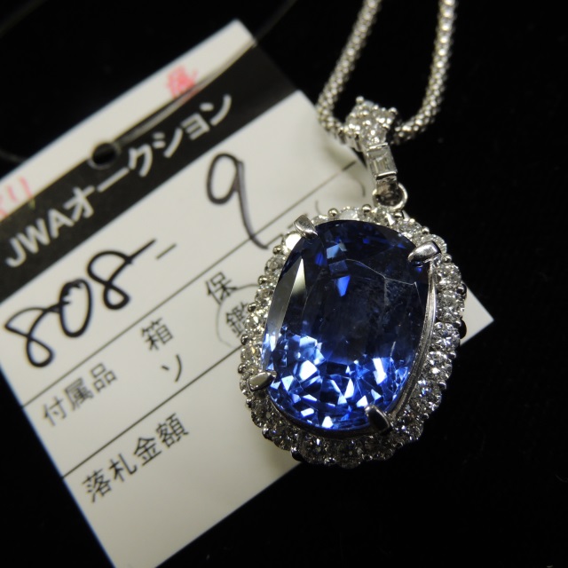 ペン・ネック サファイア 非加熱 ダイヤ Pt900/850 22.30g GIA鑑 石目:22.7 1.56
