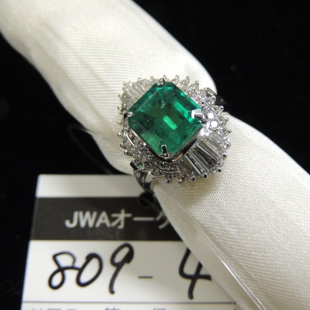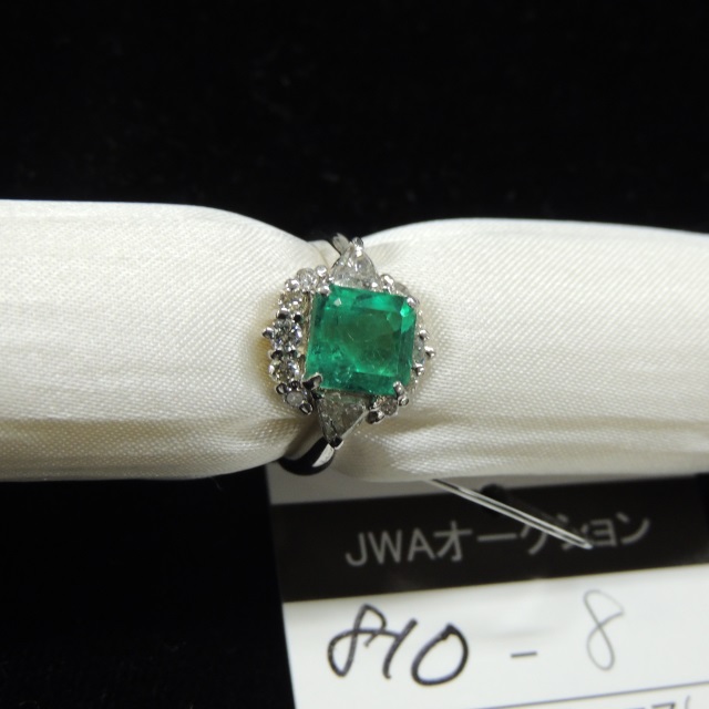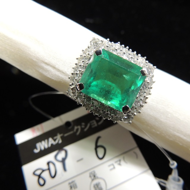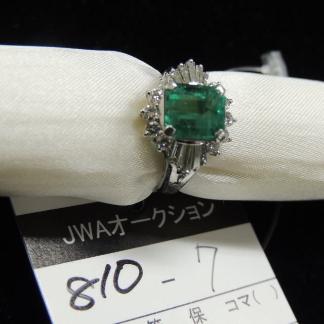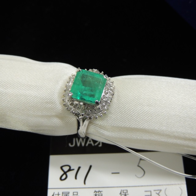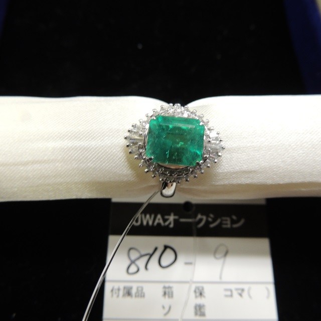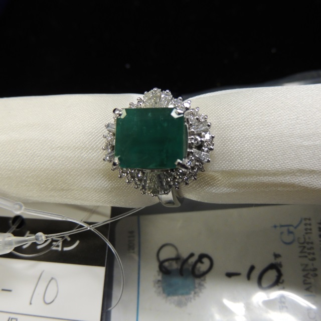 リング エメラルド ダイヤ Pt900 13.80g 中鑑 石目:7.76 2.45