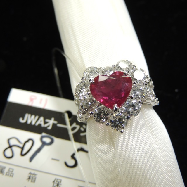 ペントップ ルビー 非加熱 ダイヤ Pt900/850 5.55g 鑑 石目:2.04 0.77