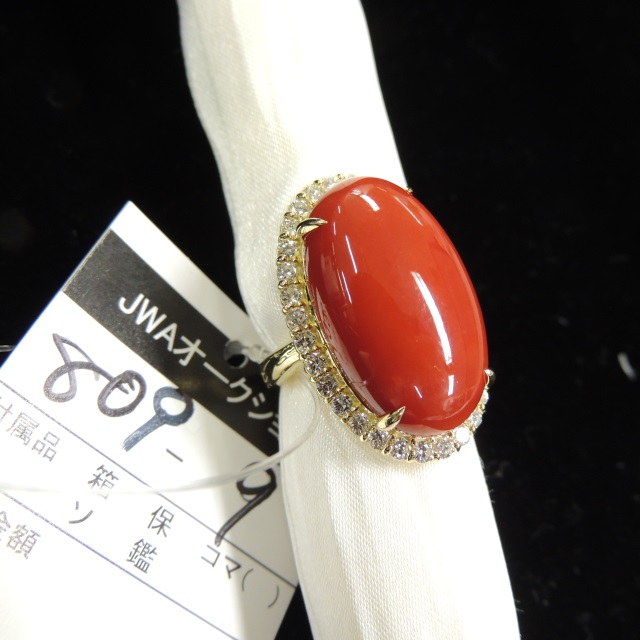 リング 珊瑚 ダイヤ K18 15.60g 石目:26.16 1.07