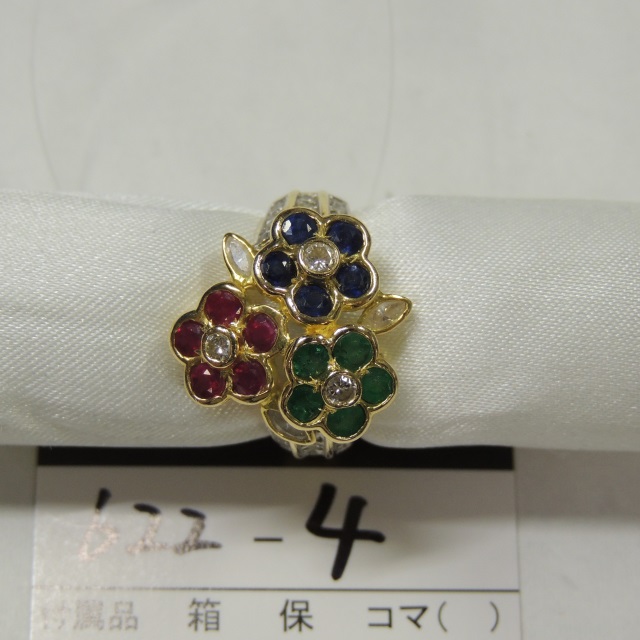 リング サファイア ルビー エメラルド ダイヤ K18 8.90g 石目:S0.65 R0.61 E0.55 FD0.67