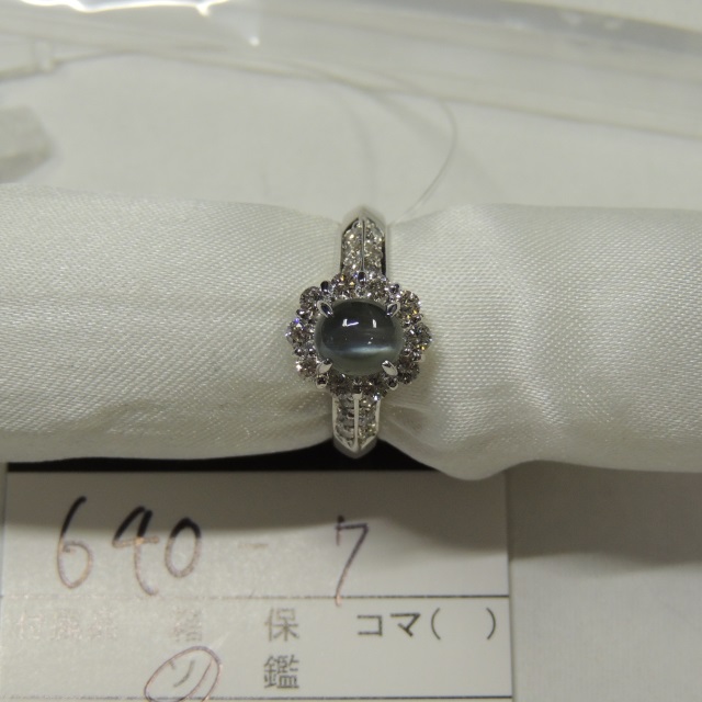リング クリソベリルキャッツアイ ダイヤ Pt900 5.80g 中ソ 石目:1.43 D0.55
