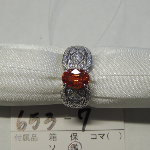 リング オレンジサファイア Pt950 9.95g GIA鑑 石目:2.04 0.37