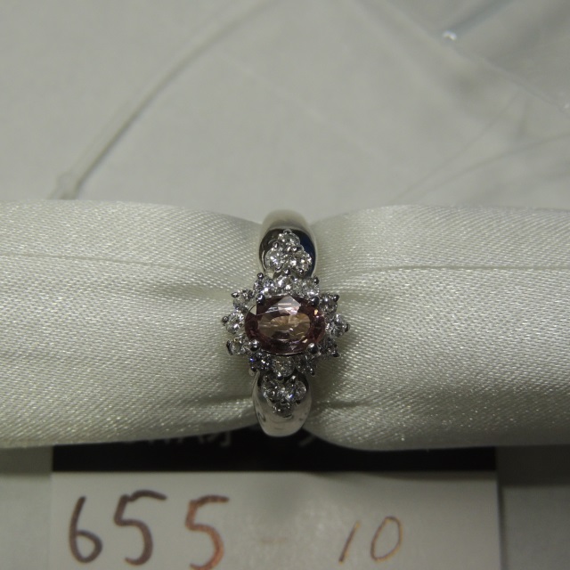 リング ゴールデンサファイア ダイヤ Pt900 8.10g GRJソ 石目:0.49 0.28