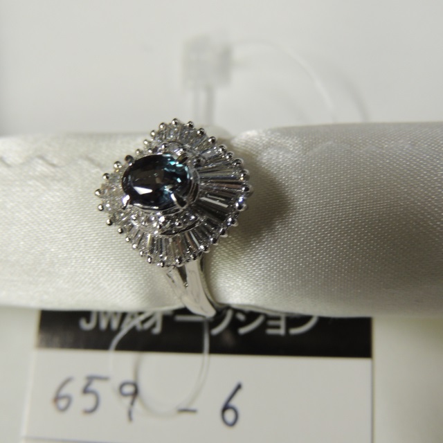 リング 水色石 ダイヤ Pt900 6.00g 石目:D0.18