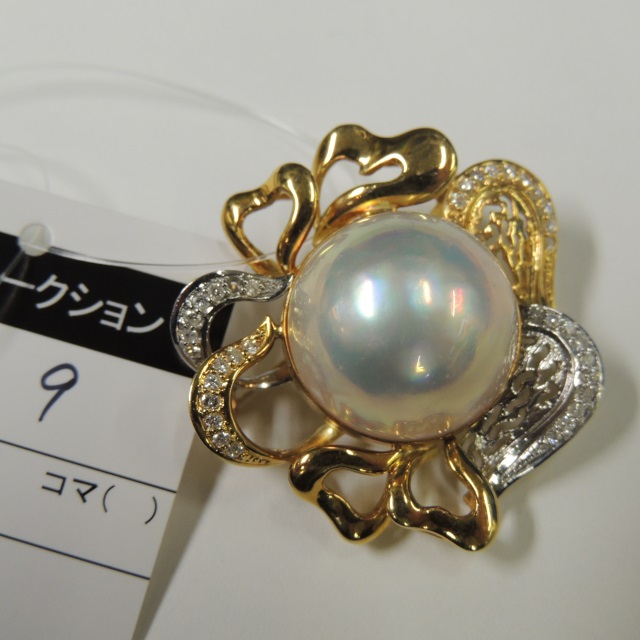 ブローチ マベパール 20mm K18/Pt900 22.00g 石目:FD0.52