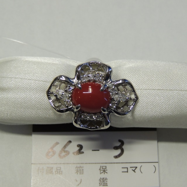 リング サンゴ ダイヤ Pt900 17.50g 石目:S3.55 D0.50