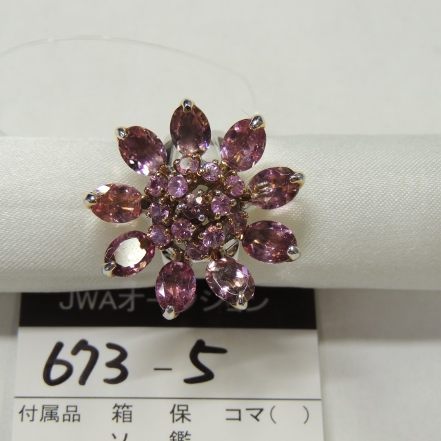 リング ピンクサファイア ブラックダイヤ K18WG 7.70g 石目:BD0.70 PS0.38
