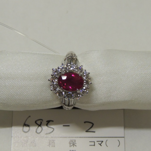 リング ルビー Pt900 10.10g GRJソ 石目:R2.04 D1.87