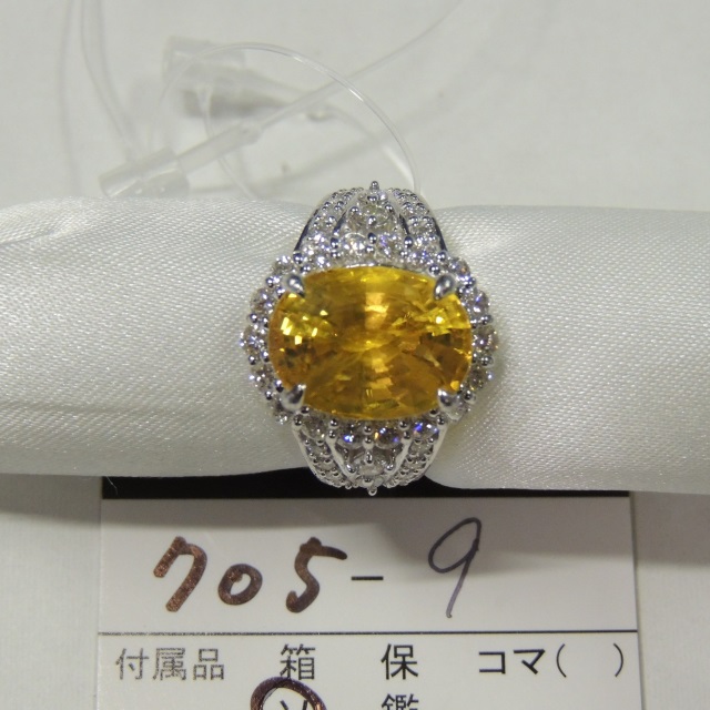 リング イエローサファイア ダイヤ 拡散加熱処理 Pt900 10.90g 中ソ 石目:9.112 1.126