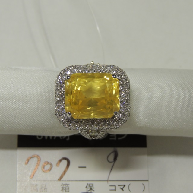 リング イエローサファイア 非加熱 ダイヤ Pt900 19.70g 鑑 石目:20.252 3.46