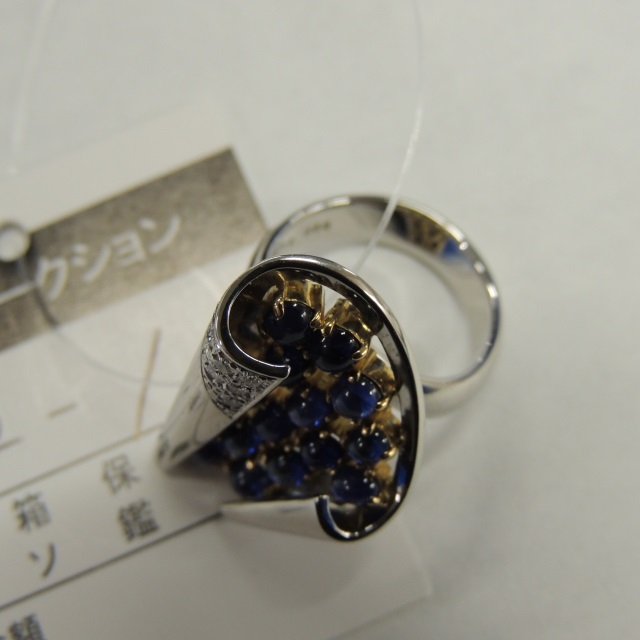 リング サファイア ダイヤ Pt900 19.30g 石目:13.44 0.25
