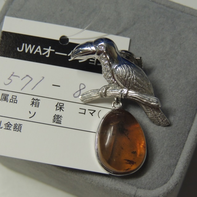ブローチ コハク 重量キャッチ含まず K18WG 9.40g 石目:D0.15