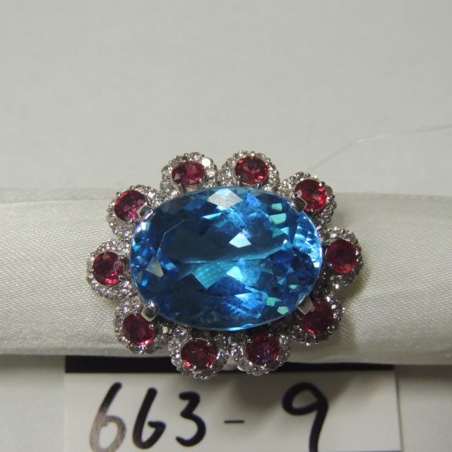 リング ブルートパーズ ルビー ダイヤ Pt900 25.30g 石目:BT15.20 D1.16 R2.72