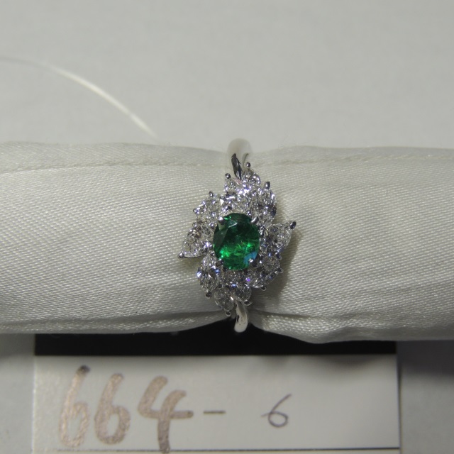 リング エメラルド Pt900 4.40g 石目:E0.41 D0.97