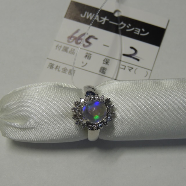 リング メキシコオパール ダイヤ Pt900 9.40g 石目:2.84 D0.45