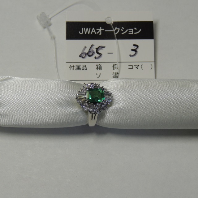 リング エメラルド ダイヤ Pt900 7.10g 石目:3.28 0.37