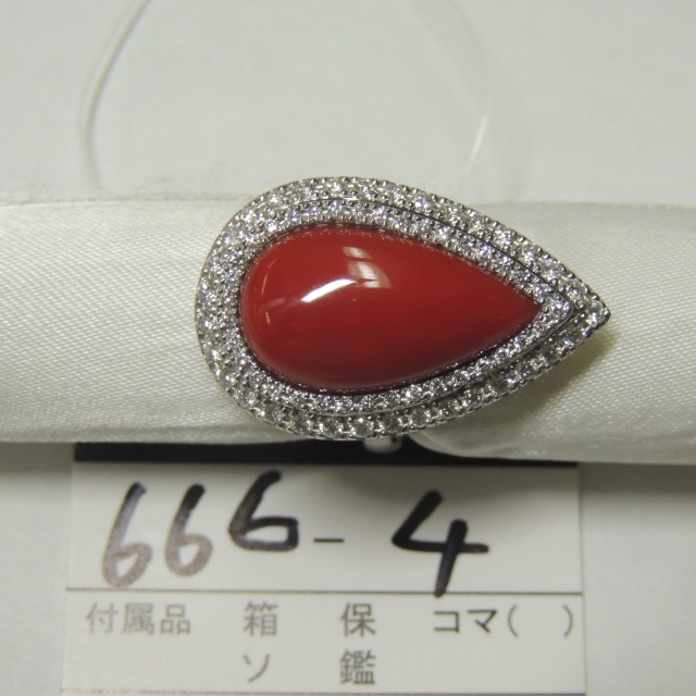 リング サンゴ ダイヤ Pt900 13.50g 鑑 石目:S10.38 D0.85