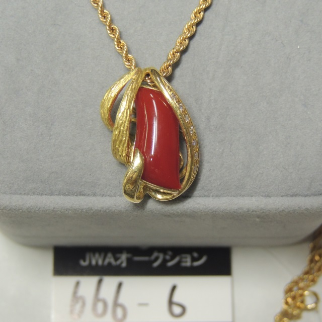 ペン・ネック サンゴ ダイヤ K18YG 8.12g 石目:S D0.08
