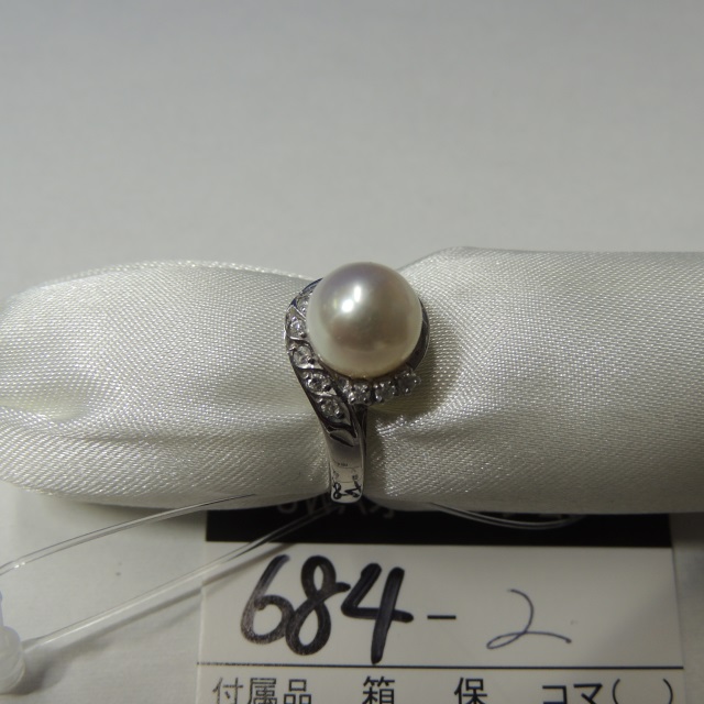 リング 南洋真珠 ダイヤ P12.6mm K18WG 9.50g 石目:FD0.17