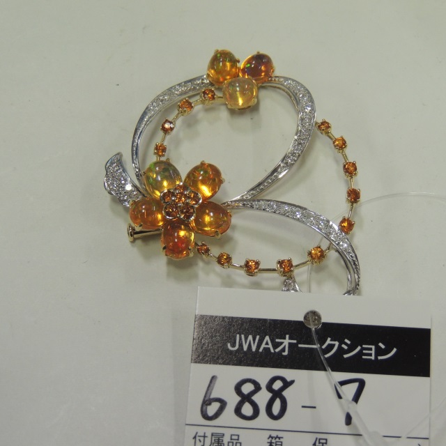 ブローチ オパール K18WG 14.80g 石目:OP7.41 D0.77 G1.53