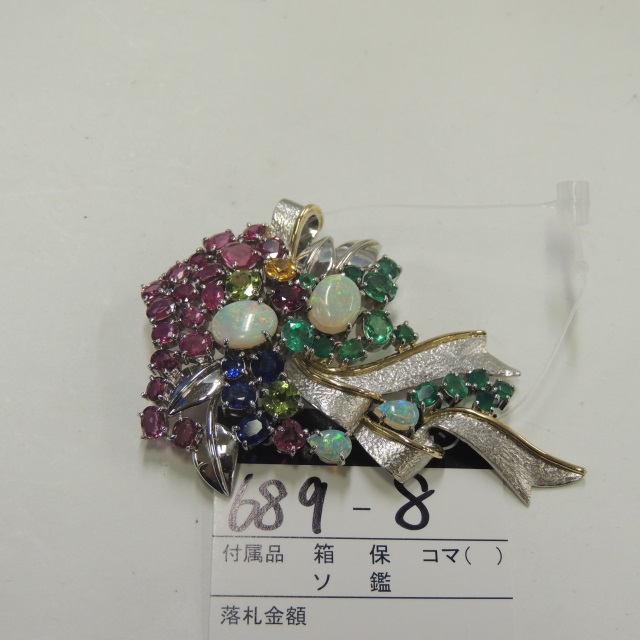 ブローチ マルチ Pt900/K18 33.10g 石目:E2.499 PE1.054 R6.003 OP2.698 S1.924