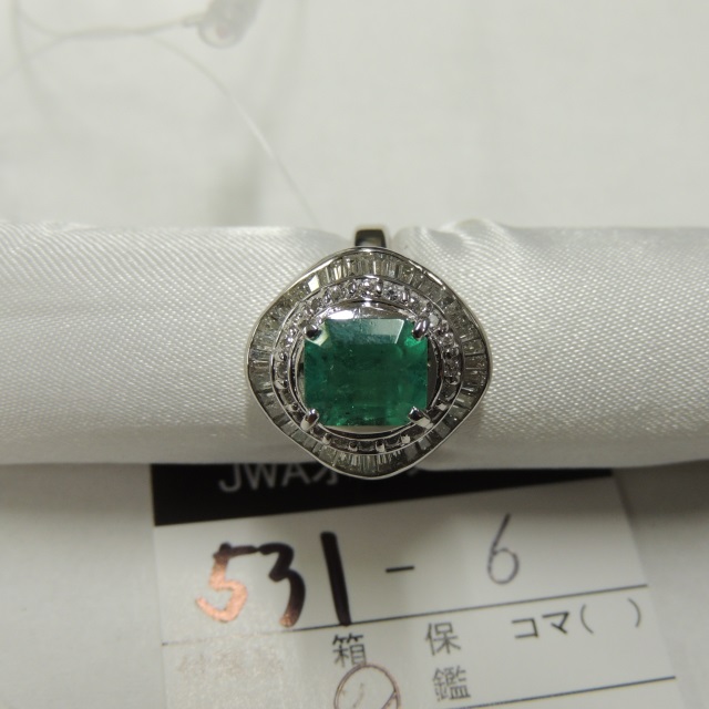 リング エメラルド ダイヤ Pt900 12.60g GRJソ 石目:2.06 1.51